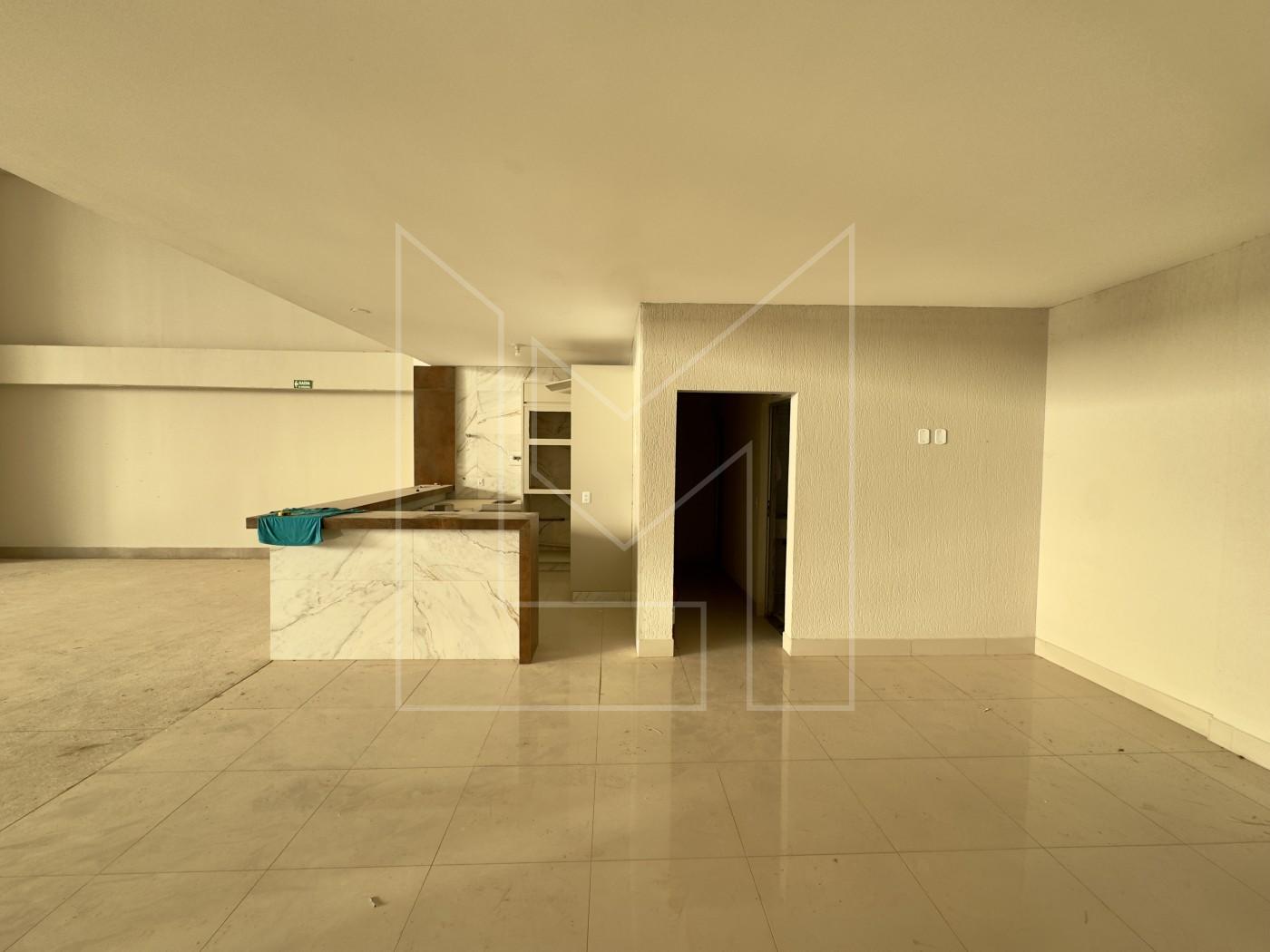 Possui 10 banheiros, 200 vagas de garagem.